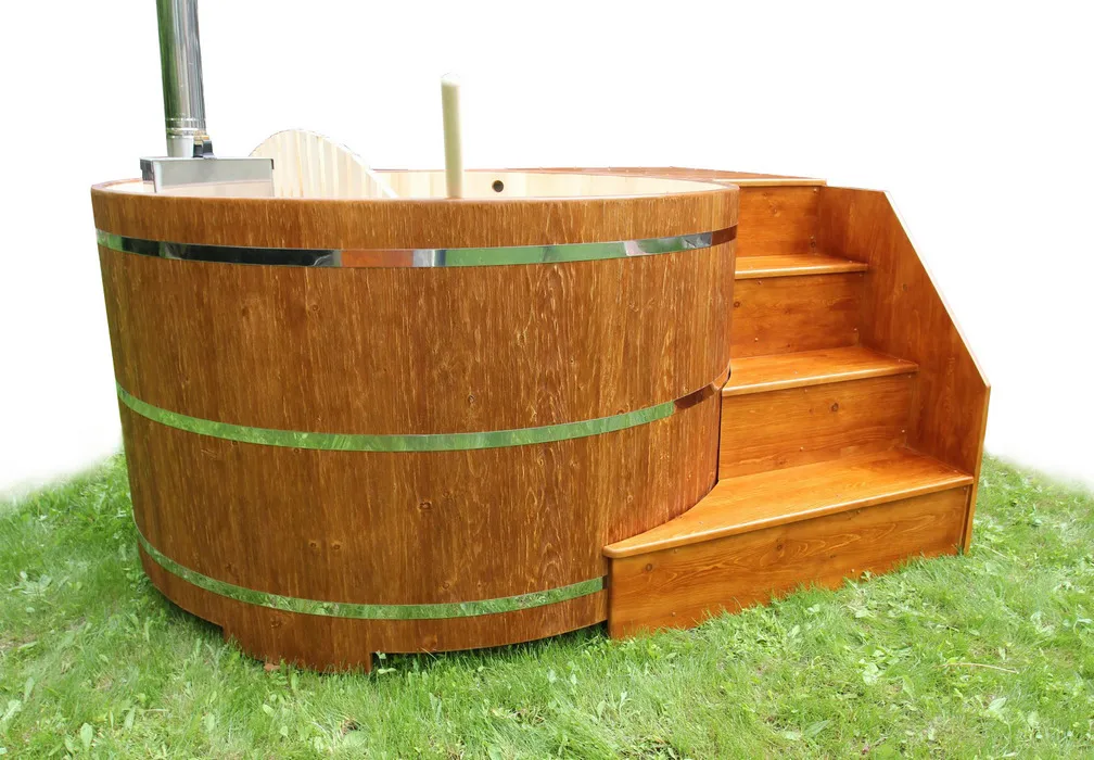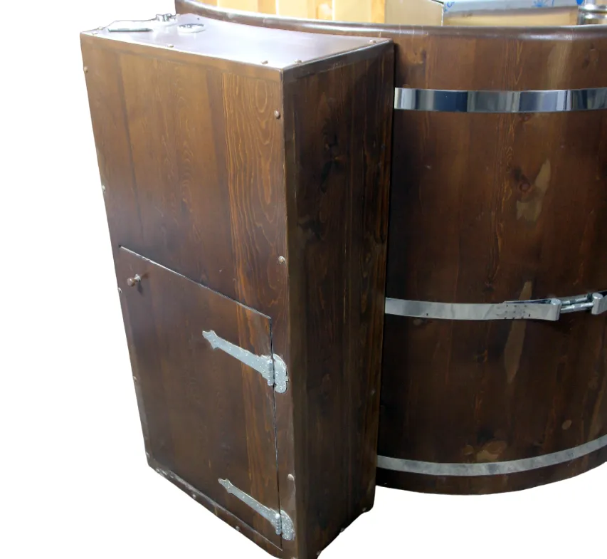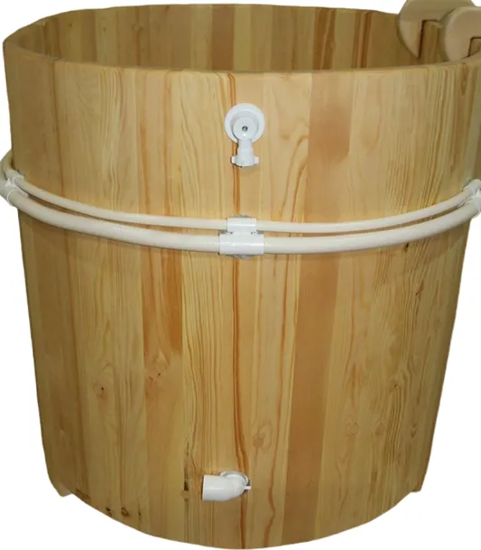 Представляет собой герметичную емкость для воды из кедра, которая предназначена для отдыха и охлаждения тела после процедур парения. Ширина прямоугольной купели равна ширине стандартных дверных проемов (78 см), поэтому занести в помещение ее можно в собранном виде. Благодаря прямоугольной форме купель хорошо впишется в угол помещения. Так же ее можно установить на улице. Прямоугольная купель оснащена лавочками, приставной и внутренней лестницей из кедра. Обручи из нержавеющей стали плотно прилегают к изделию, что позволяет равномерно распределить нагрузку воды и сохранить форму во время эксплуатации. При правильном уходе купель для бани не рассыхается и не подвергается гниению.