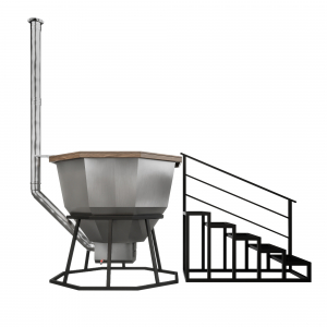 Банный чан из нержавеющей стали Ø-2350 на подставке с ветрозащитой и печью СТ3