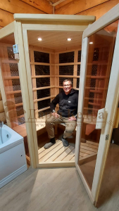 Трёхместная угловая инфракрасная сауна кабина из кедра с карбоновыми излучателями